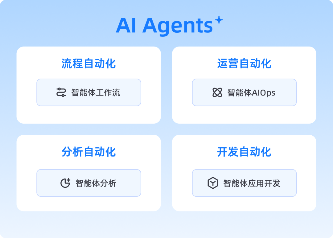 Forrester在报告中指出,中国企业正在四大智能应用领域——流程自动化、分析自动化、运营自动化和开发自动化加速部署AI Agent,以推动智能自动化、提高效率和提高生产力。其主要功能领域已证明具有战略商业价值: